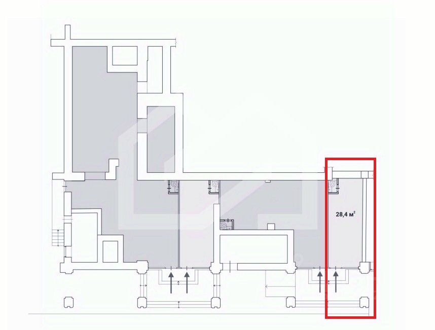 1022286. Предлагаем помещение свободного назначения, площадью 28.4 кв. м, расположенное на первом этаже 14-этажного жилого дома.