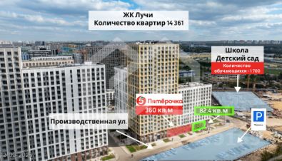 1066963. Предлагаем угловое помещение свободного назначения в ЖК "Лучи", площадью 51.4 кв. м, расположенное на первом этаже 24-этажного жилого дома. Корпус: 3-4.