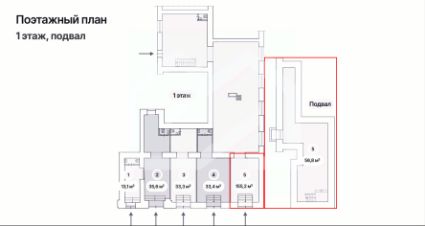 1094581. Предлагаем помещение свободного назначения, площадью 212 кв. м., расположенное на первом этаже и в подвале 8-этажного жилого дома.