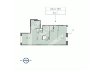1095070. Предлагаем помещение свободного назначения, площадью 56,7 кв. м, расположенное на первом этаже жилого дома в ЖК "Лучи". Корпус 1-2.