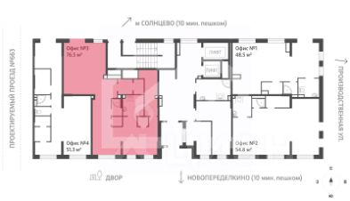 1095140. Предлагаем помещение свободного назначения, площадью 76,5 кв. м., расположенное на первом этаже жилого дома в ЖК "Лучи". Корпус 3-4 (этап 2).