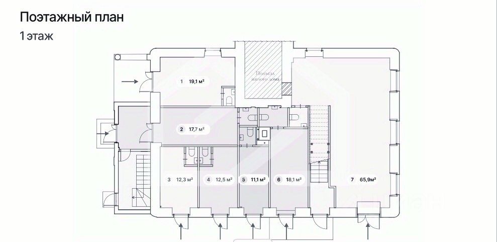 1112597. Предлагаем торговое помещение, площадью 65,9 кв. м., расположенное на первом этаже жилого дома.