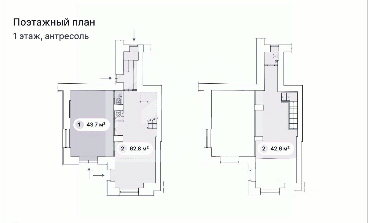 1163390. Предлагаем торговое помещение под лицензируемый вид деятельности (медицина, фармакология, образовательные услуги), площадью 105.4 кв. м., расположенное на первом этаже и антресоли 8-этажного жилого дома.