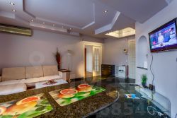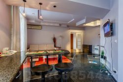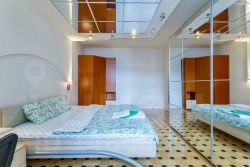ОПИСАНИЕ: Большая 2-х комнатная квартира класса люкс. Дизайнерский ремонт. Престижный район. Размещение до 4-х человек. Спальные места 2+2 (двуспальная кровать 180 на 200 с ортопедическим матрасом, комфортный раскладывающийся диван). Полностью обставлена современной мебелью. Зеркальный шкаф-купе. Встроенная кухня. Санузел совмещенный, большая ванна, импортная сантехника. Стеклопакеты. Сталинский дом, лифт, пандус, чистый подъезд, метал. дверь. Парковка стихийная, но места всегда есть!