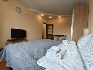 Посуточная аренда квартиры включает следующие удобства: Современная мебель, двуспальная кровать, бытовая техника, скоростной WI-FI, спутниковое TV, гладильная доска, сушка, оборудованная кухня, полный комплект посуды для приготовления и приёма еды, мыло, тапочки и фен