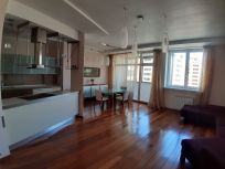 2 санузла: есть и полноценная ванна и душевая кабина. Стиральная машина с сушкой. Кондиционер, дизайнерское освещение. В отделке использованы натуральные материалы. Витражи и светильники - Мурановское стекло. Панорамные виды. В стоимость включено 1 машиноместо в подземном паркинге. На территории ЖК - фитнес клуб, автомойка. В 50-ти метрах от дома - Азбука вкуса, нотариус, прачечная. Огороженная охраняемая территория. Круглосуточная охрана в подъезде. Все службы сервиса работают 24 часа.