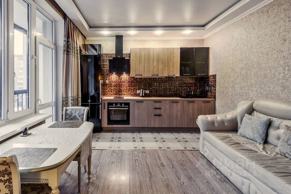 Квартира укомплектована качественной дизайнерской мебелью, многоураовневым освещением, бытовой техникой и всем необходимым для комфортного проживания одного человека, либо семейной пары без детей и животных.