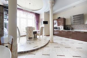 В квартире: большая гостиная с каминной группой, кухня-столовая, 2 спальни, гардеробная, кладовая-постирочная, 2 санузла( один с ванной, другой-с душевой кабиной), большая открытая лоджия. Дизайнерский ремонт, усиленный армированный контур и дополнительная звукоизоляция. Ремонт произведен с использованием дорогих натуральных отделочных материалов. Встроенная кухня с техникой Kupersbush,удобные системы хранения, различные сценарии освещения с применением диммеров.