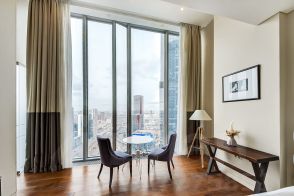 Кухня: Кухня оборудована встроенной техникой, включая холодильник, конвекционную печь, посудомоечную машину, микроволновку и плиту. Для приготовления напитков доступны кофемашина Nespresso и чайник. В апартаментах также имеется электронный планшет для вызова рум-сервиса.