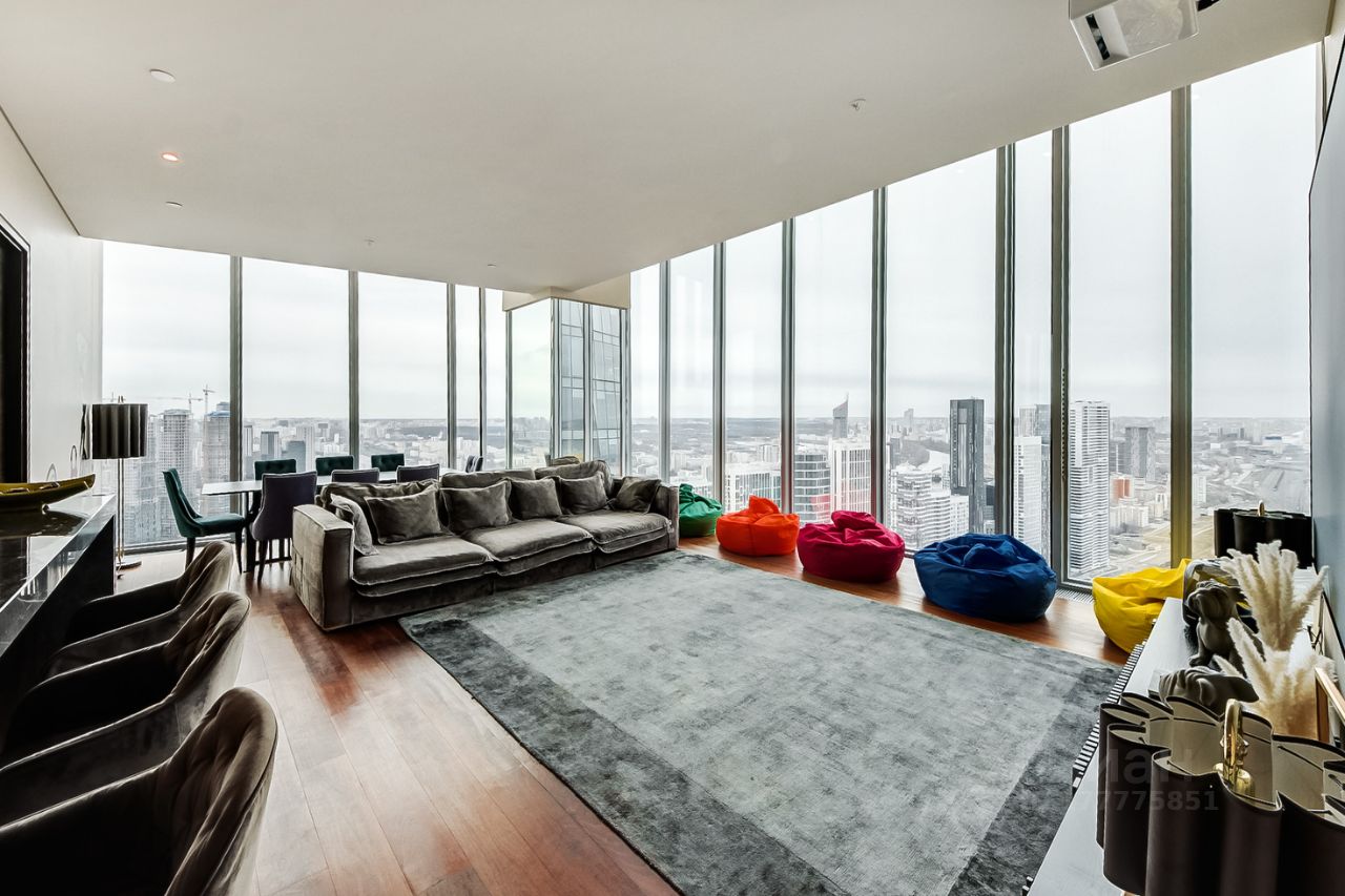 Скай Гранд Лаундж - это современные и роскошные апартаменты с двумя спальнями, расположенные на 45-м этаже Башни Око в Москве. Площадь апартаментов составляет 170 м2, и они предлагают следующие удобства: