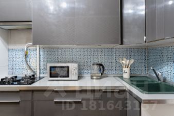 - На кухне: холодильник, варочная панель, вытяжка, СВЧ-печь, чайник.