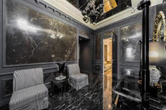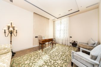 Клубный дом на 4 квартиры. ВЫСОКИЕ ПОТОЛКИ. Просторная пятикомнатная квартира после ДИЗАЙНЕРСКОГО ремонта класса ЛЮКС с использованием дорогостоящих материалов - мрамор, натуральное дерево. Функциональная планировка: изолированная кухня - просторная гостиная с действующим ДРОВЯНЫМ КАМИНОМ - две спальни с своими санузлами - гостевая/детская спальня - кабинет (или комната свободного назначения), большая ГАРДЕРОБНАЯ КОМНАТА с окном, гостевой санузел. ИТОГО : 4 СПАЛЬНИ. 3 САНУЗЛА.