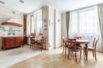 Кухня-гостиная студийного плана оборудована всей необходимой бытовой техникой (Miele). Из кухни выход на большую утепленную лоджию.