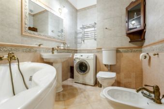 Основная спальня с большим шкафом. Уютная детская со шкафом. Основной санузел с ванной. Джакузи. Гостевой санузел оборудован душевой кабиной. В прихожей встроенный шкаф для одежды. Мебель и сантехника итальянского производителя. Телевизор. Встроенный пылесос. Кондиционер.