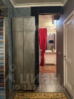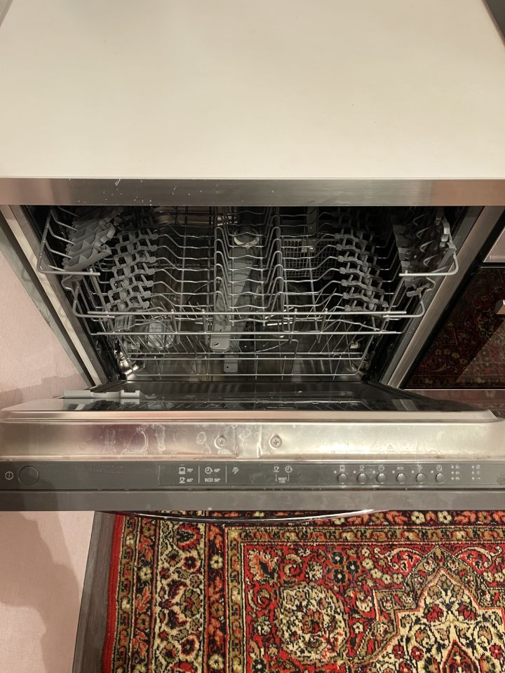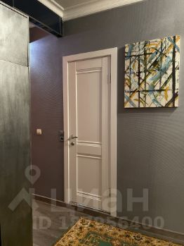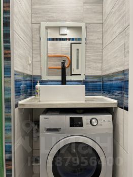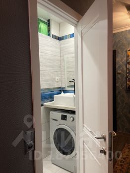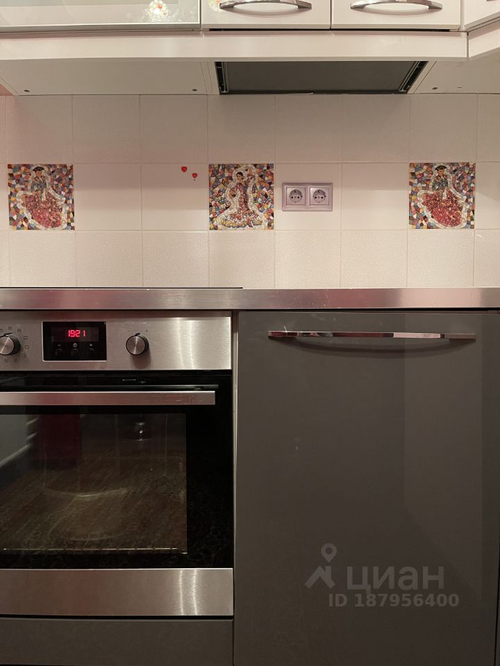 В комнате стоит диван 2.0x1.6 м., компьютерное кресло. На кухне встроенный гарнитур, холодильник AEG, варочная поверхность, духовка, посудомойка, барная стойка, стулья. Микроволновка, кофеварка тоже есть. Санузел в плитке, стиральная машина Haier. В прихожей шкаф-купе с зеркалом. Лоджия застеклена, окна выходят на юг.