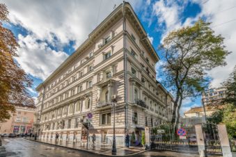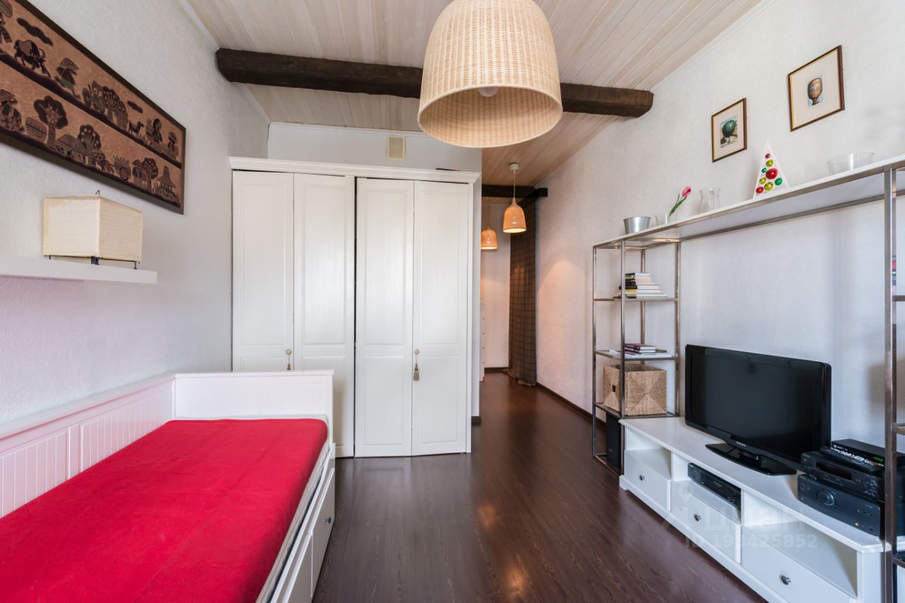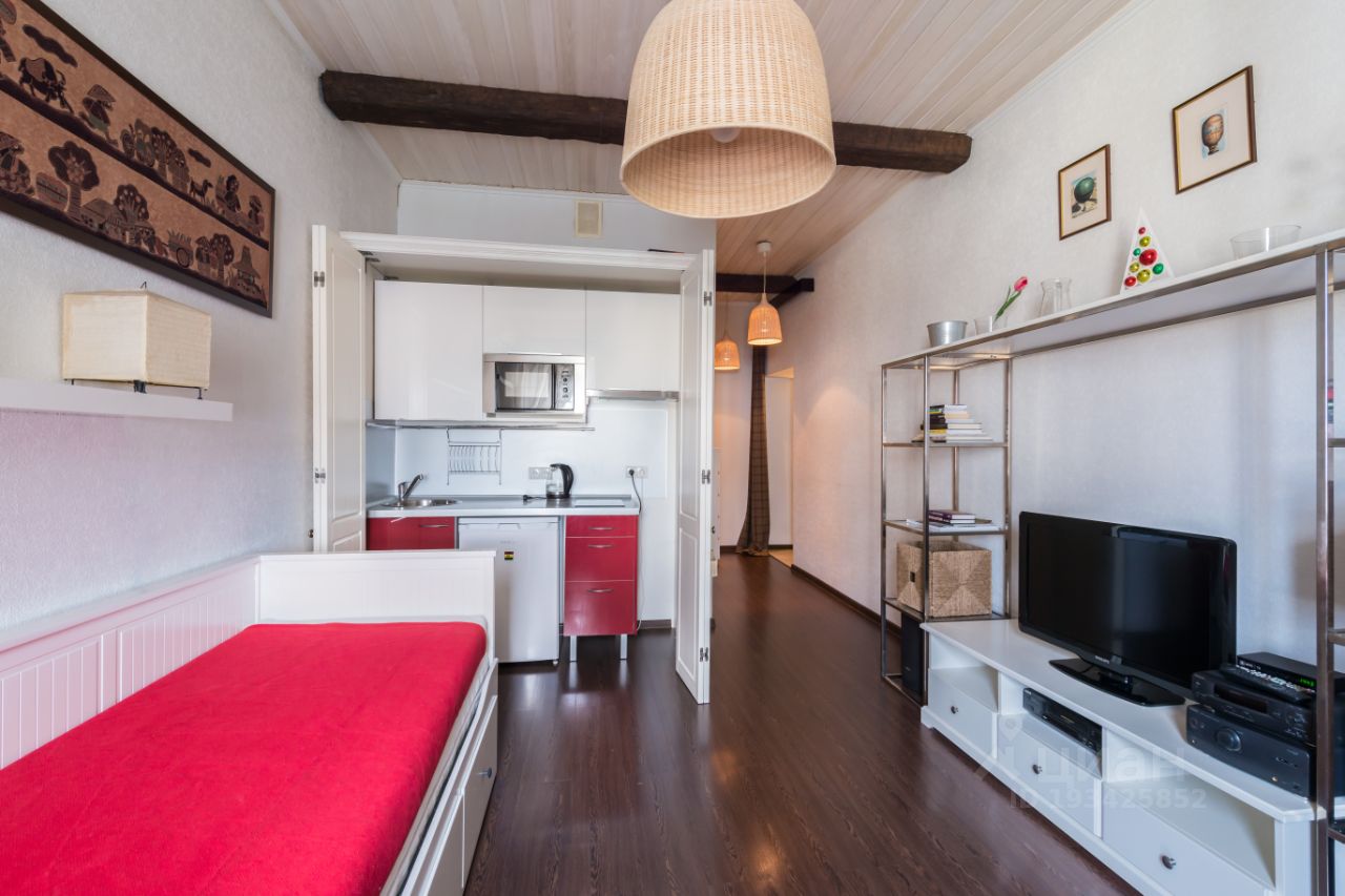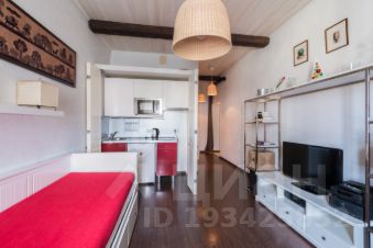 Уютная квартира-студия с евроремонтом в светлых тонах на мансардном этаже дореволюционного здания в самом центре Москвы.
