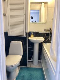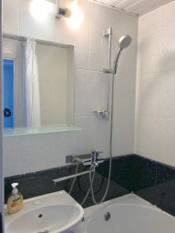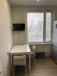 На кухне выполнен новый косметический ремонт. Кухонный гарнитур, холодильник, стиральная машина, микроволновая печь, стол, стулья. Санузел в плитке.