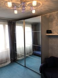 В комнате современный набор мебели: большой зеркальный шкаф-купе, комод, журнальный столик, небольшой диван, большая двухспальная кровать. ТВ только на кухне!!!