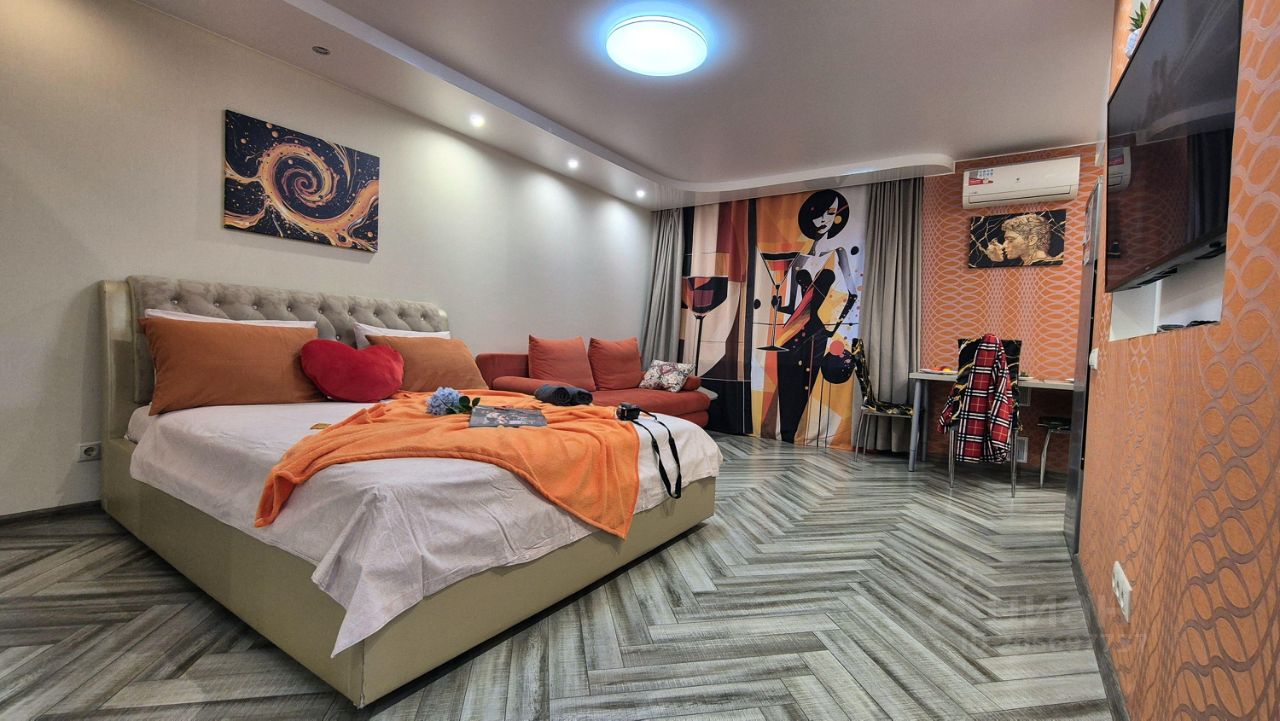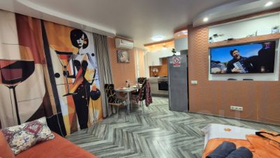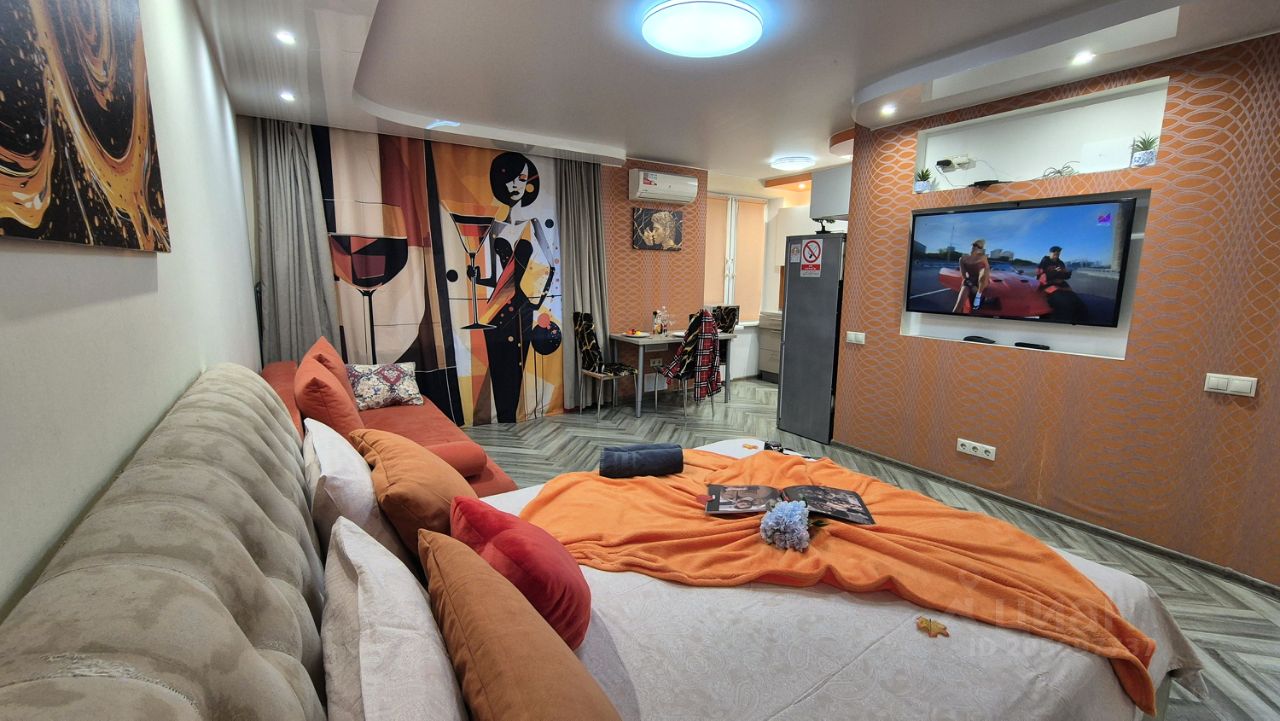 В комнате комфортный двух спальный диван, большая двух спальная кровать с хорошим ортопедическим матрасом, большой шкаф для одежды, ЖК-ТВ.