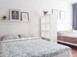 Для Вашего удобства: двуспальная кровать, раскладывающийся двухспальный диван, шторы blakcout, телевизор (smart TV), wi-fi, кондиционер, а также, утюг, фен и стиральная машина.