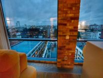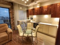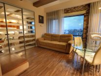 Сдаются в аренду апартаменты с дизайнерским технологичным ремонтом. Делали для себя. Прекрасный вид из окна. В наличии вся необходимая бытовая техника( посудомойка, духовой шкаф, микроволновка, стиральная машина фирмы neff, кофемашина nespresso, винный шкаф, фильтр для воды цептор), ТВ. На окнах электрожалюзи, не нужно вставать с кровати, чтобы открыть окна и любоваться прекрасным видом. Электродиван фирмы MOBEL&ZEIT управление с пульта, возможно изпользовать в различных положениях сидячее положение, Relax и спальное гостевое место 200*200. Комфортная душевая кабина 150*90. С различными видами душа. Теплый пол в прихожей, зоне кухни и ванной комнате. Вместительная гардеробная комната, со встроенной гладильной доской. В апартаментах есть все необходимое для комфортного проживания.