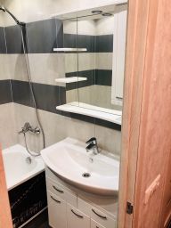 На кухне- холодильник, эликтрическая плита, посудомоечная машина, электрический чайник, микроволновая печь, по необходимости можем предоставить еще один телевизор.