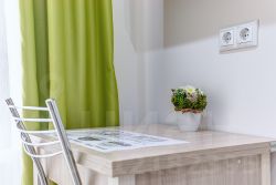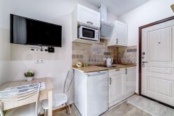 Студия оборудована всем необходимым для комфортного проживания: диван со спальным местом 160*200, микроволновая печь, стиральная машина, сплит-система, телевизор со SMART TV, высокоскоростной Wi-Fi, фен, утюг и т.д.