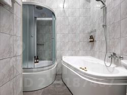 Просторная ванная комната с ванной и душевой кабиной и два туалета