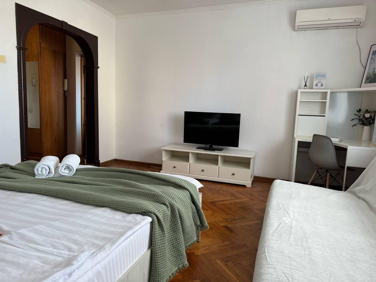 Квартира с дизайнерским ремонтом оборудована двуспальной кроватью с ортопедическим матрасом, блэкаут шторами, чистым постельным бельем, тапочками, посудой на 2 персоны, зеркалом с подсветкой, Wi-Fi и телевидением с заботой о Вашем комфорте.