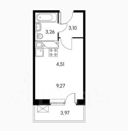 Квартира-студия . хорошее состояние , застекленный балкон , С/У совместный , полноценная ванная !