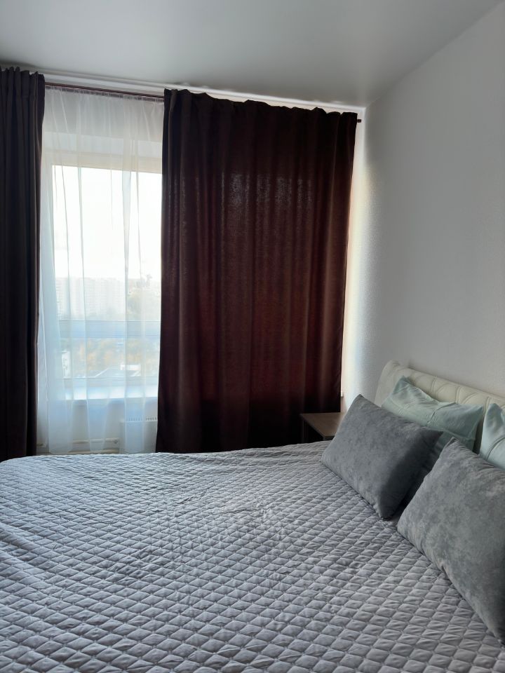 Светлая, теплая, солнечная, просторная квартира, без личных и лишних вещей, с гардеробной, отдельной спальней с большой кроватью и ортопедическим матрасом и кухней-гостиной.