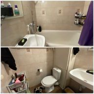 После ремонта. Большая комната, просторный хол с кухней. Есть необходимый набор мебели и техники (всё, что на фото + пылесос, сушилка для белья). В дополнение к фото - повешу серые шторы, личных вещей не будет.