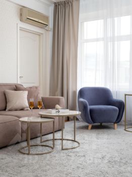 - Простор для компании до шести человек: Две спальни с кроватями Queen Size и гостиная с удобным диваном создают идеальный баланс личного пространства и общих сборов. В каждой комнате — кондиционер и SMART-ТВ, чтобы никому не было скучно.