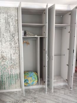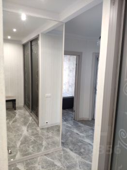 Прихожая - большое зеркало и встроенный шкаф, полка для ключей.