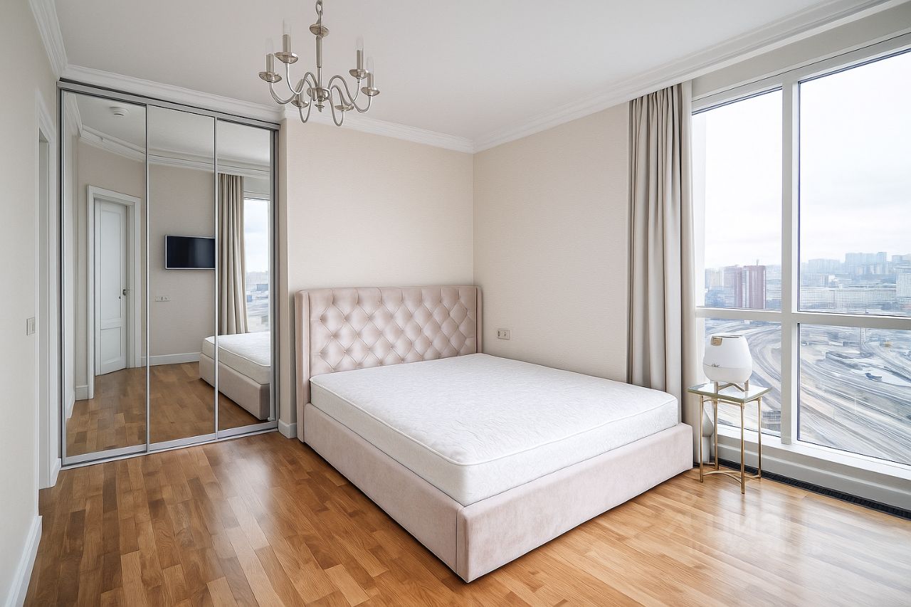 Новый ремонт! Презентабельная трехкомнатная квартира в ЖК "Дом на Беговой". Парковочное место входит в стоимость. Качественный дорогой ремонт с использованием дорогостоящих премиальных материалов, с панорамными окнами и прекрасным видом на Арбат . Функциональная планировка: зона кухни-гостиной и две спальни ,два просторных санузла. Высота потолка 3 м. Жилой комплекс расположен в непосредственной близости к центру города, в Хорошевском районе Москвы, в 2 мин. пешком от метро "Беговая". Жилой комплекс максимально функционален за счет использования новейших инженерных решений, среди которых имеются скоростные бесшумные лифты, противодымная вентиляция с системой автоматического оповещения, автоматизированная система водяного пожаротушения и надежная высокопроизводительная система вентиляции. Прилегающая территория комплекса и внутренние помещения общего пользования находятся под постоянным видеонаблюдением. Предложение напрямую от собственника.Оперативный показ.