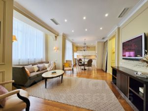 Сдается в аренду 2-х комнатная квартира с дизайнерским ремонтом в 10 минутах пешком от м. Пушкинская (или Маяковская), ул. Малая Бронная д.21/13 стр1, 4-й этаж 6-этажного дома, пересечение со Спиридоньевским переулком, лифт. Общая площадь 75 квм, кухня- гостиная с эркером 40 квм, спальня с угловым панорамным окном 20 квм, гардеробная 10 квм, прихожая 7 квм, санузел совмещенный 9 квм, газ. колонка Италия. Паркетная доска, керамогранит. Балкон 4 квм с французским окном, Дорогая кухня, встроенная техника Miele, Bosch, посудомойка, кофемашина, вытяжка. Качественные окна ПВХ. Потолки 2.9 м. Дорогая мебель, шкафы. Центральное кондиционирование. Кровать 2.0 х 1.8 м. 2 минуты - Патриаршие Пруды. В доме уютные кафе и прекрасные рестораны. Театры и кино. Концертный зал Чайковского. Вся инфраструктура. Тихие зеленые дворы. На длительный срок. Без детей. Без животных. Заезд с 10 ноября.