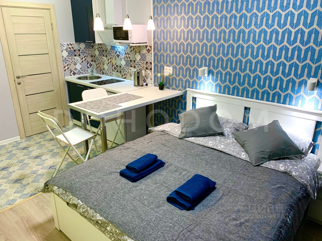 СДАЕТСЯ НОВАЯ КВАРТИРА-СТУДИЯ БЕЗ КОМИССИИ!!! Предлагается современная и уютная квартира с качественным дизайнерским ремонтом. Студия оснащена всем необходимым для отдыха и работы. Двуспальная кровать с удобным матрасом, фен, утюг, гладильная доска. Оборудованная кухня, посуда, все для приготовления еды. Новая мебель и бытовая техника: холодильник, микроволновая печь, электрическая плита. Цифровое телевидение и WiFi.