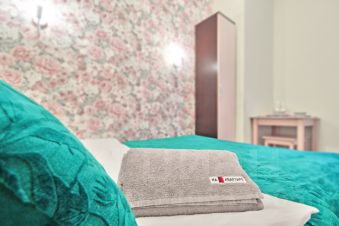 Апартаменты продуманны до мелочей. Возле кровати находится окно, которое закрывается плотными шторами. Напротив висит телевизор с кабельными каналами.
