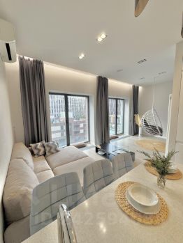 Параметры квартиры: общая площадь 47 кв. м; с/узел; этаж/этажность 5/9; вид из окон на Москву-реку; окна - панорамные алюминиевые, двойной стеклопакет; высота потолка 3.20 м.