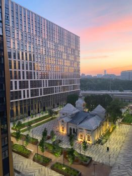 Безопасность: Противопожарная система Система противодымной вентиляции Системы автоматического водяного пожаротушения и противопожарного водопровода Двухкамерный алюминиевый стеклопакет с энергосбережением, солнцезащитой и шумопоглощением.