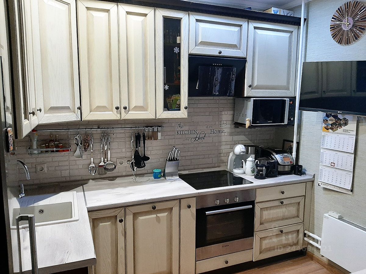 В квартире выполнен качественный ремонт, комнаты изолированные, санузел раздельный, просторная кухня с выходом на застекленную лоджию, в большой комнате два окна, гардеробная, встроенная кухня, бытовая техника, шкафы, полы - ламинат и плитка, потолки -подвесные.