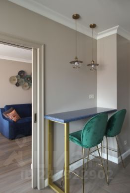 Теплые полы в коридоре, на кухне и балконе; эксклюзивная паркетная доска - в гостиной и спальне. На кухне выделена кофе-зона с барной стойкой для быстрых завтраков и перекусов. Кухня объединена с гостиной с использованием раздвижных дверей в пенал.