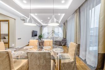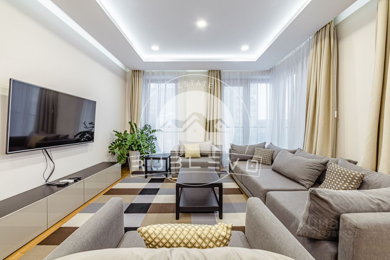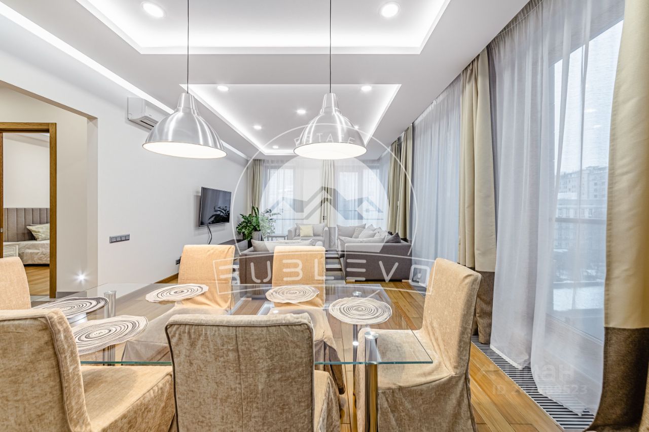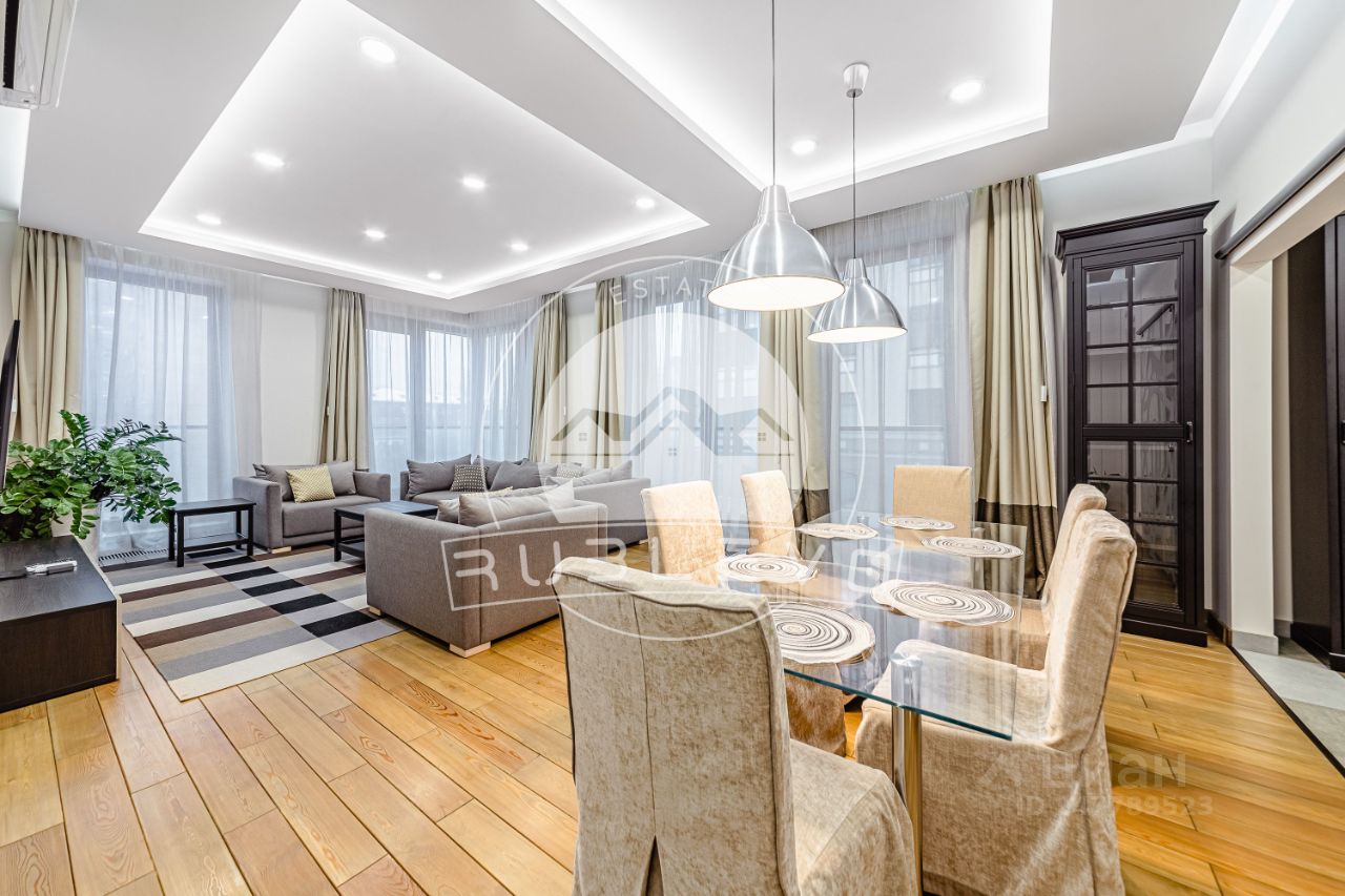 ПРЕДЛОЖЕНИЕ НАПРЯМУЮ ОТ СОБСТВЕННИКА. Аренда 4 комнатной квартиры площадью 170 м2. Метро Смоленская , 3 минуты пешком. 1-й Смоленский переулок, дом 21. ЖК Smolensky De Luxe. Светлая и уютная квартира с готовым оформлением интерьеров в современном стиле. Качественные натуральные материалы, которые подчеркивают уют и комфортную атмосферу для отдыха. Квартира полностью укомплектована мебелью и техникой современных брендов, в каждой комнате установлены кондиционеры. Светлая цветовая гамма подчеркивает потенциал пространства и создает особую атмосферу для полноценного отдыха. Окна выходят во двоp. Есть два балкона.