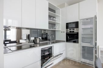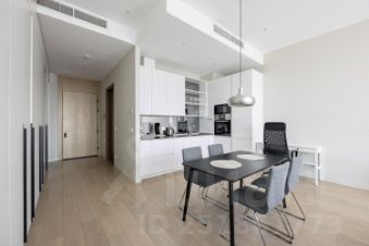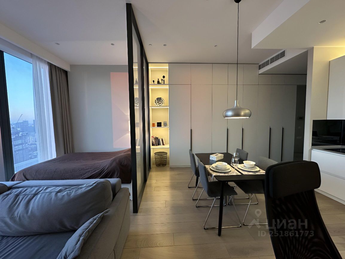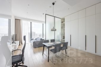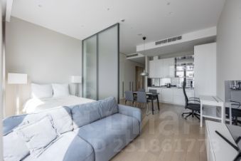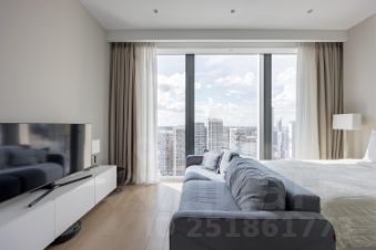 Fully furnished 550 square feet, gracious and bright studio apartment features views of sunset, the river, Victory Park, fireworks and Moscow skyline from 11-foot floor-to-ceiling windows. Large open chef's kitchen has top-of-the-line appliances including dishwasher, built-in refrigerator, oven, microwave. The apartment has a spacious bathroom featuring a marbled shower, Villeroy&Boch appliances as well as radiant heated floors. The apartment also has a Smart Home technology, custom motorized shades, hardwood flooring, and a built-in washer/dryer.
