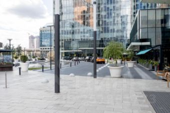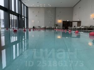 На четвертом этаже небольшой парк, два бассейна, на дорожках свободно. Из внутреннего бассейна можно выплывать в горячий открытый.