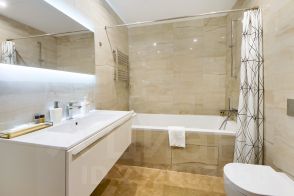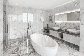 В каждой из двух спален вас ожидает уютная атмосфера. Кровати размера king-size, панорамные окна, гардеробная и смежная ванная комната обеспечат вам комфорт и удовольствие. Однако, только из одной из спален можно перейти в ванную комнату с шикарной открытой ванной. Эта комната просторна достаточно, чтобы насладиться расслабляющими моментами вдвоем.