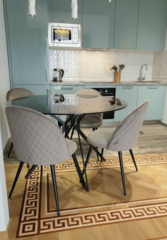 Квартира оснащена всей необходимой мебелью и техникой для комфортного проживания: холодильник, посудомоечная машина, фильтр питьевой воды, плита, духовой шкаф, микроволновая печь, телевизор в каждой комнате, Wi-Fi, Smart TV, стиральная машина, водонагреватель на период отключения горячей воды. Спальня оборудована кроватью с трансформируемым основанием Ergomotion с функцией массажа для комфортного отдыха и здорового сна, пультом ДУ. Отдельная душевая кабина в спальной комнате.