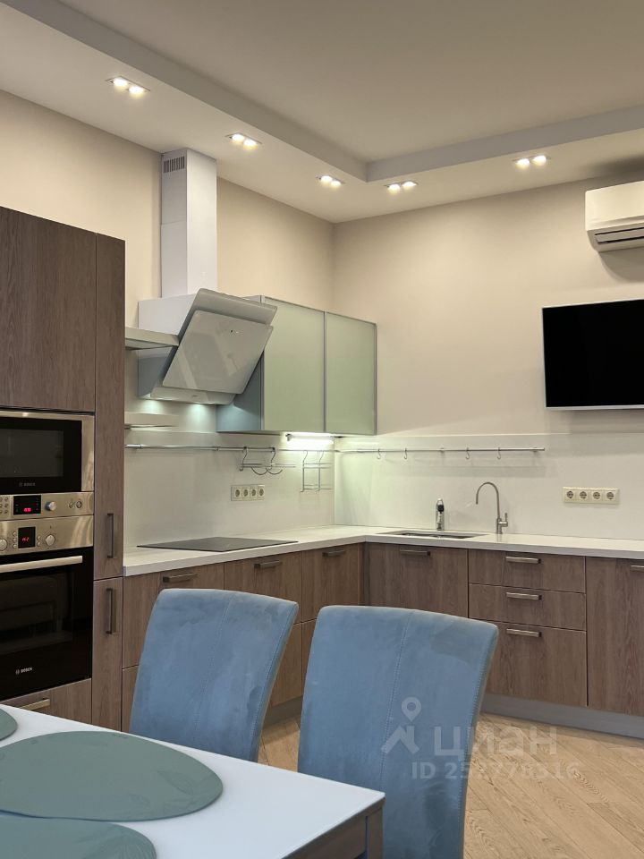Выполнен качественный ремонт в светлых тонах с использованием дорогостоящих натуральных материалов. Подвесной потолок с многоуровневым освещением. Сделана шумоизоляция, в том числе у соседей сверху и снизу. Квартира укомплектована техникой ведущих производителей (Liebherr, Bosch, Siemens, LG, Sony). Кондиционеры установлены в спальне и на кухне. В санузлах сантехника Duravit (Germany), Villeroy & Boch (Germany). Стиральная, сушильная машина. Теплые полы в прихожей и санузлах. Грамотная разводка, везде есть розетки. Окна во всех комнатах оборудованы жалюзями.