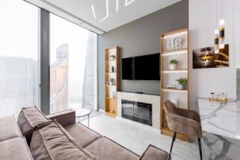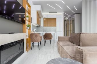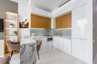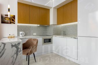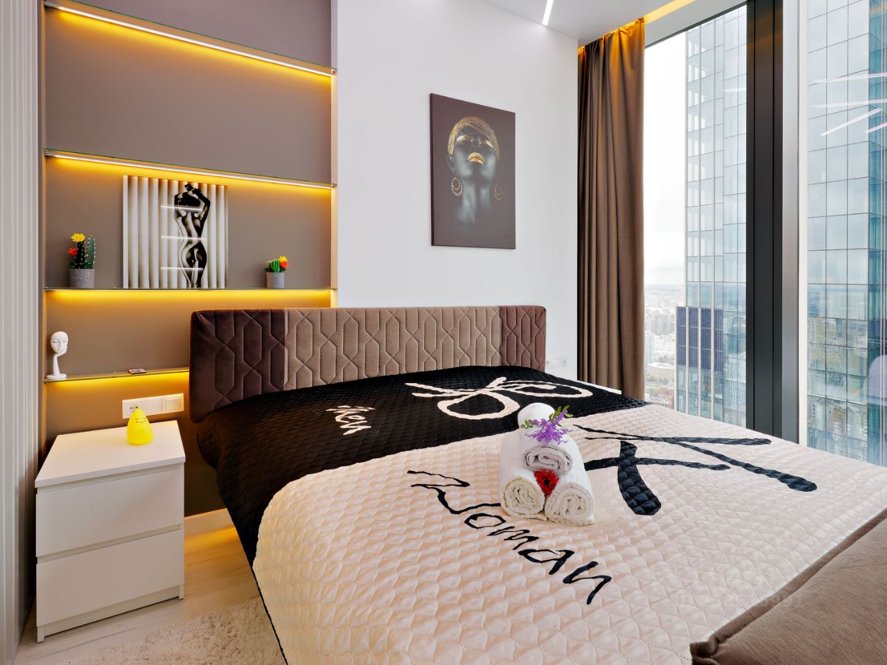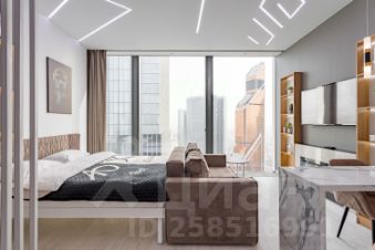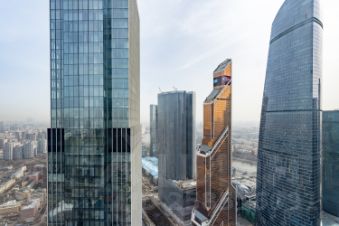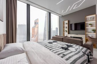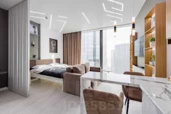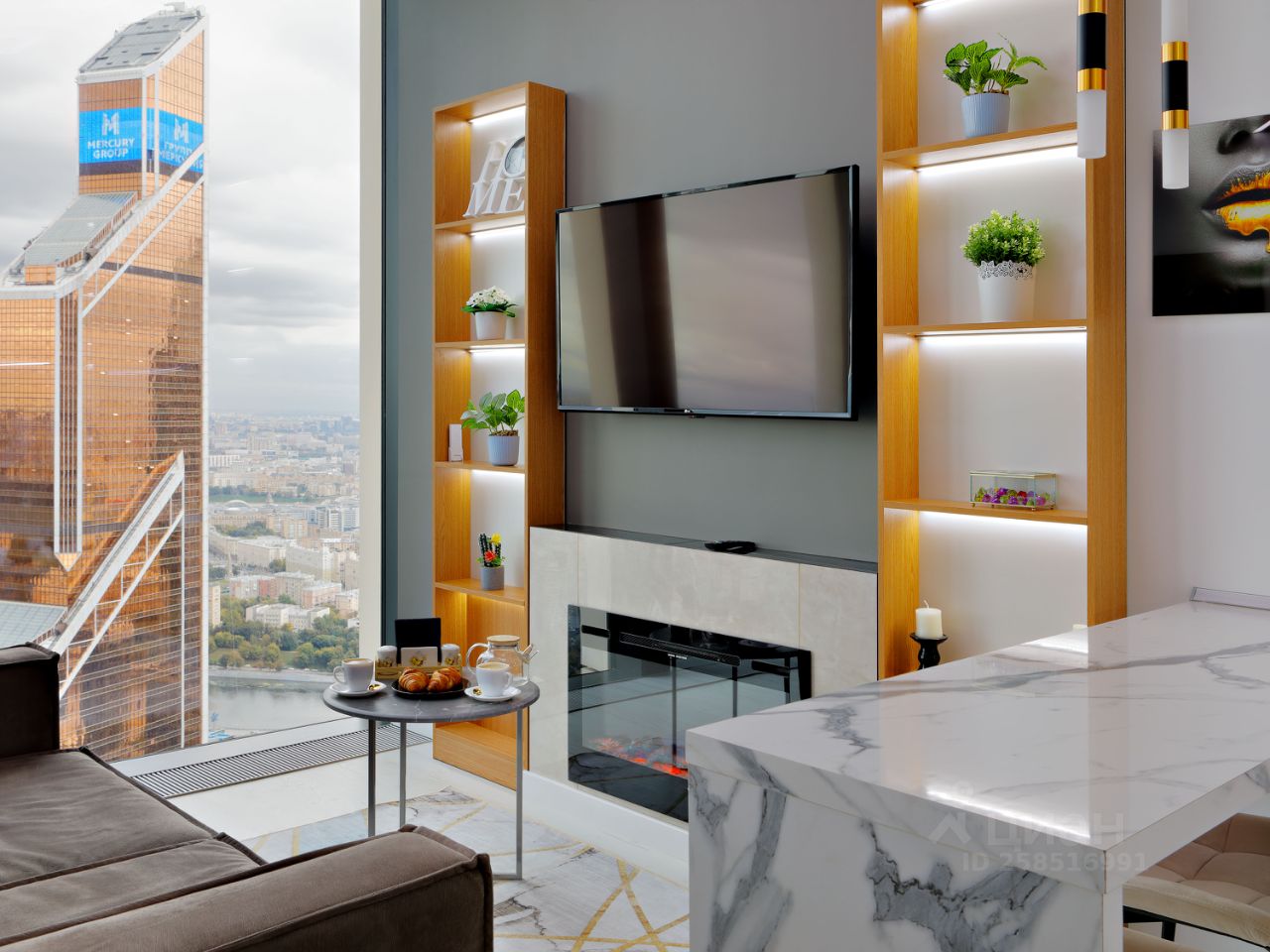 Превосходное расположение на высоте 50-го этажа с захватывающим видом на Москву-реку и городские небоскрёбы.