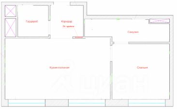 Комнаты: просторная кухня-гостиная, спальня, гардеробная комната, совмещенный санузел - 44 кв. м.